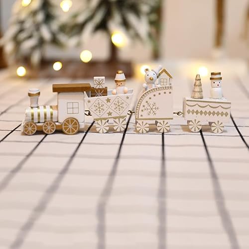 クリスマス飾りにぴったりの木製列車の卓上置物。かわいいミニサイズでインテリアやギフトにも最適!室内や玄関を華やかに彩ります。子供のおもちゃとしても楽しめる工芸品です。