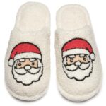 Funky Junque Cozy スリッパは、ソフトで軽量なフラシ天素材を使用。スマイリーフェイスデザインのクローズドトゥ。女性用ルームウェアとして最適。サンタ(アイボリー)カラー、サイズ37/38 EU。