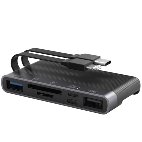 6in1 USBアダプターは、充電とデータ転送が可能な多機能デバイスです。USB-C、USB-Aポートを備え、さまざまなデバイスに対応。高速データ転送ができ、持ち運びにも便利です。