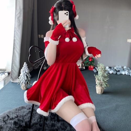 [JUNDOMECY] クリスマス コスプレ レディース セクシー サンタクロース 仮装 緑 赤 ワンピース 大きいサイズ 可愛い サンタ 衣装 イベント パーティー 舞台 新年会 (レッド, XL)