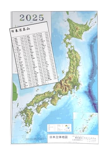 2025年版の日本立体地図カレンダーは、立体的な地形を美しく表現し、四季折々の日本の風景を楽しめます。日本百名山シールセットが付いており、旅の思い出を記録するのに最適です。