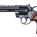 クラウンモデルのホップアップエアリボルバーNo.23はコルトパイソン.357マグナム6インチモデルで、ウッドタイプのグリップを採用。10歳以上向けのエアソフトガンです。