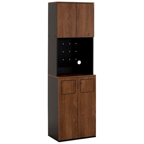 ホームテイストのヴィンテージごみ箱一体型食器棚は、ウォールナット色でスタイリッシュなデザイン。ごみ箱2つタイプで、キッチンの整理整頓に最適です。サイズや材質については公式サイトをご確認ください。
