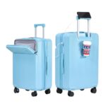 [Yuweijie] スーツケース 拡張型 機内持ち込み ストッパー付き フロントオープン キャリーケース sサイズ 2泊3日 軽量 大容量 多機能 トップポケット ファスナー パソコンケース キャリーバッグ USB カップホルダー付き 携帯スタンド 頑丈 TSAロック 360度回転ブレーキ機能 修学 トラベル 出張 38リットル 水色の高価買取ITEM
