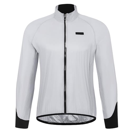 サンティックの長袖サイクルジャケットは、軽量で撥水・防風性能を備え、春秋の自転車走行に最適です。収納可能なデザインで、ロードバイクにも対応。ホワイトのMサイズ。