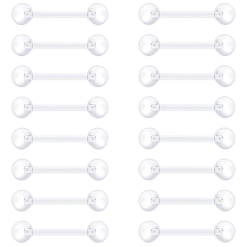 [Bmawpfygkl] 16個プラスチックニップル舌リングリテーナーストレートバーベルフレキシブルアクリル舌ニップルピアスリテーナー12mm14mm16mm18mm,シルバー,宝石なしの高価買取