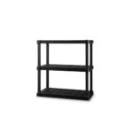 アイリスオーヤマの3段プラスチックラックは、組み立てが簡単で工具不要。サビに強く、軽量で耐荷重90kg。サイズは幅91.4cm、奥行45cm、高さ96.3cm。ブラックカラーです。
