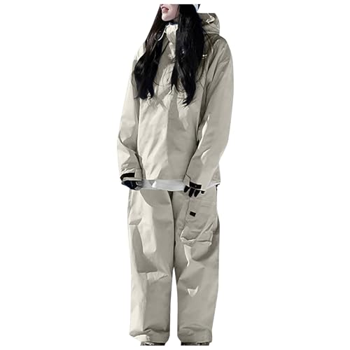 [Chenyoulan] スキーウェア レディース 上下セット スノーボードウェア メンズ スノボウェア フード付き 耐水圧 防寒 ジャケット ロングパンツ 2点セット 保温 大きいサイズ 中綿入り 撥水 透湿 プルオーバー カジュアル 雪遊び 防風 パーカーベージュ2XLジャージ レディース 冬 温かい 高価買取中
