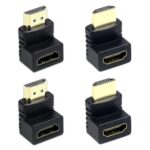 HDMI変換アダプタ4個セット。L型コネクタ(90度・270度)で、HDMIオスをメスに変換。接続や延長に便利で、向きを変更できる。ミニプラグ対応のアダプターキットです。