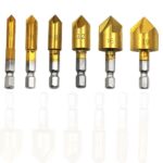 LeTradeJP 皿取り錐ドリル ビット 6~19mm 六角軸 HSS鋼 穴あけ工具下穴錐 座ぐり チタンコーティング 5枚刃 6本セット 高価買取中