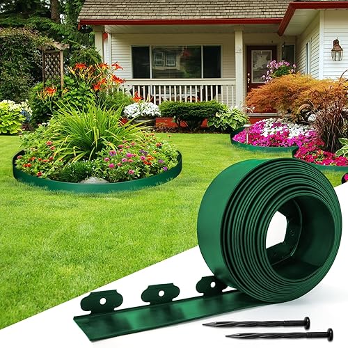 Art3d ガーデンエッジは、30本の釘付きで掘削不要。花壇やフェンス、芝生の雑草対策に最適。DIY設置が簡単で、高さ5cm、長さ10mの緑色のエッジが園芸をサポートします。