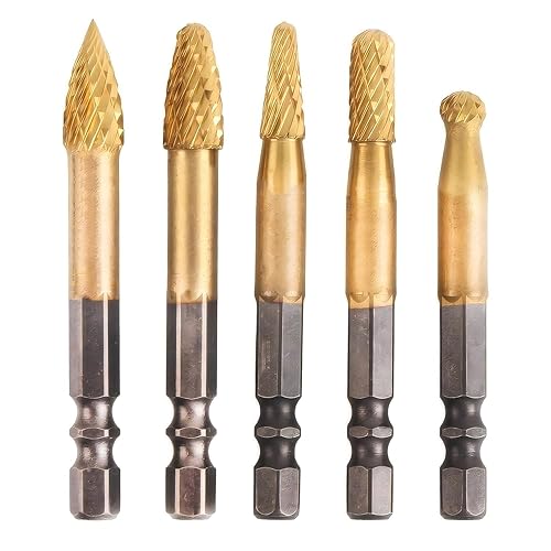 GOOMAND超硬バーは、6.35mm六角軸のタングステン製ロータリーヤスリ5本セットです。高速度で金属加工に最適な切削・研磨用ツールです。
