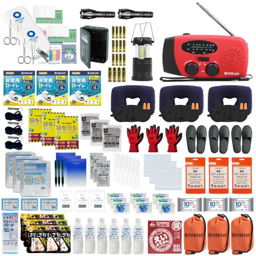 防災セット 中身だけ 3人用は、防災士監修の非常用持ち出し袋です。防災ラジオや非常食を含み、警戒レベル4に対応しています。災害時に備えた安心なセットです。