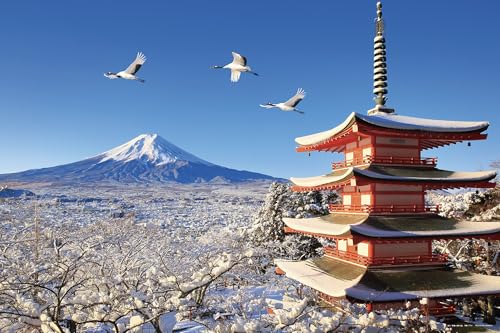やのまん(Yanoman) 【日本製】1000ピース ジグソーパズル 日本の風景 鶴舞う冬景色の富士山 (山梨) (50x75cm) 10-1481 ピース請求ハガキ のり付き へら付き サービスカード付 ジグソーパズルのトリセツ付の高価買取