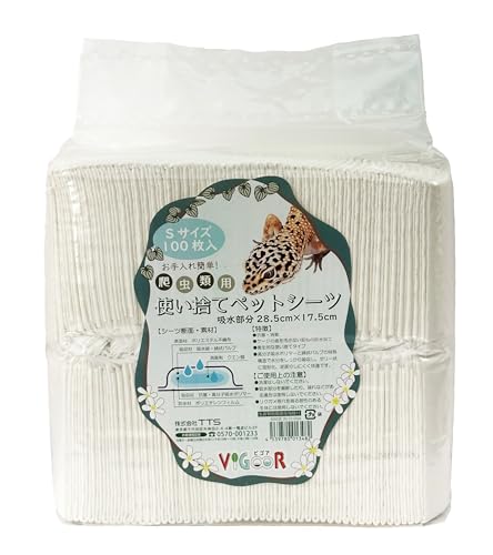 VIG∞R(ビゴア)お手入れ簡単な爬虫類用使い捨てペットシーツ。しっかり吸収し、トイレシーツや床材として最適。Sサイズで便利。