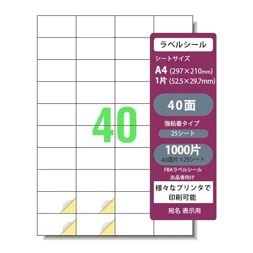 TANAKA・YAのFBA用ラベルシールは、A4判でインクジェットとレーザープリンタ両対応。強粘着で、25シート、合計1000面のシールを提供。便利なラベル作成に最適です。