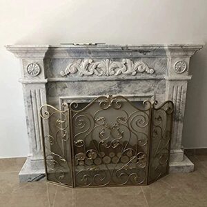 火花保護 3パネル ソリッド 錬鉄 金属 暖炉 安全 スクリーン プロテクター 装飾 スクロール スパーク ガード カバー アンティーク 素朴な摩耗仕上げ 高さ35インチ