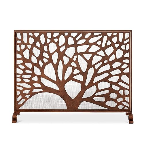Fire Guard 自立式暖炉スクリーンは、頑丈な錬鉄フレームと茶色の火花ガードゲートが特徴。金属装飾メッシュ付きで、屋外・屋内両方で使用可能。サイズは38×31インチです。