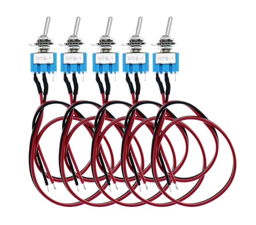 YMS PARTS 【5個入】コードハンダ済み ミニトグルスイッチ 2ポジション2ピン オン/オフ AC 125V 6A 取り付けナット ワッシャー付 MTS-101 (5) 高価買取中