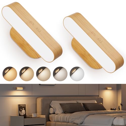Hensam LED ブラケットライト 工事不要 調光調色 ウォールライト 5000mAh Type-C 充電式 間接照明 寝室 ベッドサイド 賃貸 壁 照明 玄関 廊下 階段 卓上 洗面台 led 壁 ランプ コードレス ナイトスタンド 360°角度調節可能 目に優しい マグネットled 省エネ 2個セット