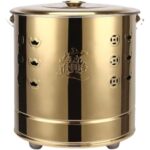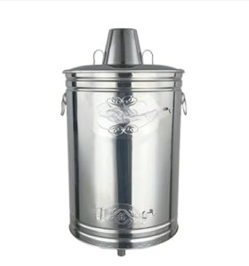 家庭用煙突付き焼却炉。無煙・耐蝕性・耐熱ペイントコートのステンレス製。庭のごみや葉を燃焼。ゴールデン色のXXLサイズ。