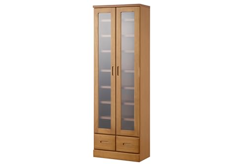 天然木でやさしい曲線加工の大容量書棚 ナチュラル ガラスキャビネット 天然木 収納棚 引出 幅60 高さ177.5 日本製 国産 収納 本棚 本収納の高価買取ITEM