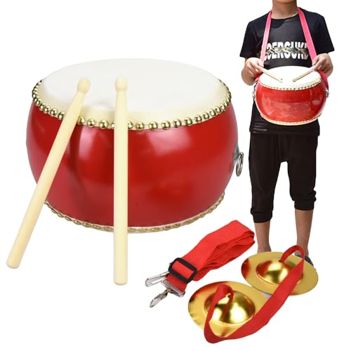 和太鼓セットにはミニシンバル、バチ、首掛けストラップが付属。牛革張りで、演奏会やマーチング、練習に最適なアイテムです。コンパクトながら音質も良好で、初心者から上級者まで幅広く楽しめます。