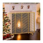 Fire Guard 39×31インチ シングルパネルの手作り錬鉄メッシュ暖炉スクリーン。ファイヤースパークガードとして機能し、リビングルームや寝室の装飾に最適。アンティーク仕上げのゴールドが魅力的です。