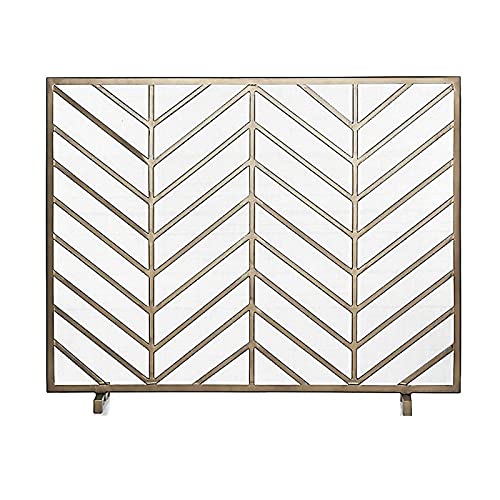 ファイヤーガード 38×31インチ シングルパネルの手作り錬鉄製暖炉スクリーン。メッシュ構造がファイヤースパークを防ぎ、リビングや寝室のアンティーク調装飾に最適です。
