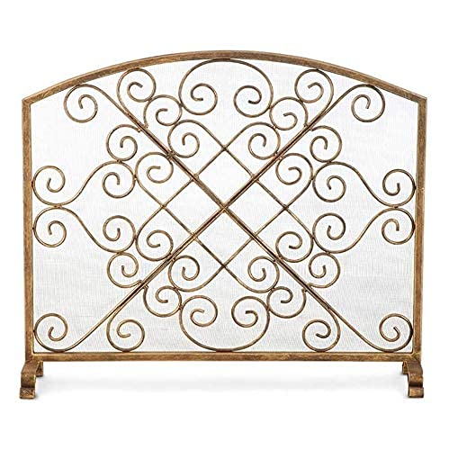 フラット暖炉スパークスクリーンは、自立式ファイアーガードで、頑丈な錬鉄フレームと金属メッシュを使用。装飾的なスクロールデザインが魅力の安全対策アイテムです。