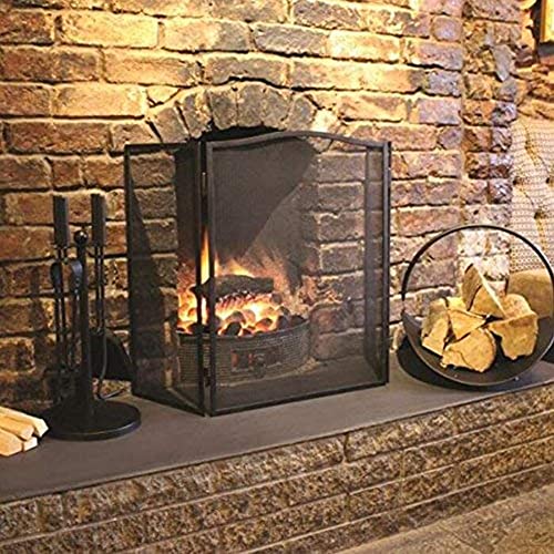 3 パネル ファイヤー スクリーン スパーク ガード アーチ型、暖炉とストーブ用のファイヤーガード、自立型 3 つ折りサラウンド スクリーン – ブラックの高価買取