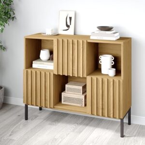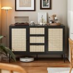 IKIFLYのキャビネットは、木製のサイドボードで引き出し付き。リビング、ダイニング、寝室に最適。ラタン収納棚と調節可能な棚で大容量収納。サイズは幅120×奥行40×高さ79.1cm、黒色。
