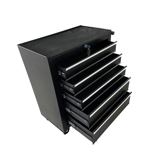 ロールキャビネットツールボックスは5段の引き出しとキャスターを搭載、移動も便利です。ロック機能付きで安全な工具収納。耐久性が高く、作業台としても活用できます。ガレージや工場でのDIYに最適です。