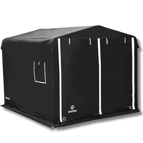 awnecバイクガレージLサイズはオールスチール製で、極厚カバーを使用。外寸は(横)210×(奥)255×(高)190cm。堅牢な構造でバイクや自転車をしっかり保護します。