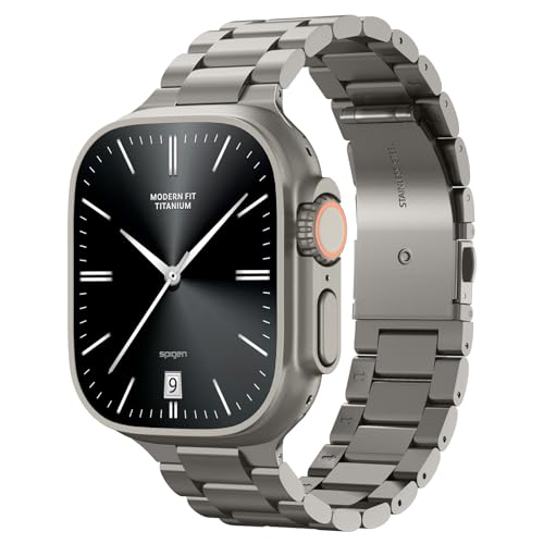 SpigenのモダンフィットApple Watchバンドは、天然チタン製で耐久性があり、49mmから42mmまでの各サイズに対応。シリーズに関係なくスタイリッシュに装着可能です。