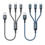 GIANAC 3in1充電ケーブル(0.5M、2本セット)は、Lightning、Micro、USB-Cに対応し、同時に3台のデバイスを充電可能。iPhone 15、Galaxy S22、Xiaomiなど多機種に対応。
