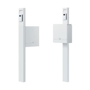「ナスタ 門柱・郵便ポスト + 防犯カメラ付きインターホンセット クオール」【照明あり-ホワイト】