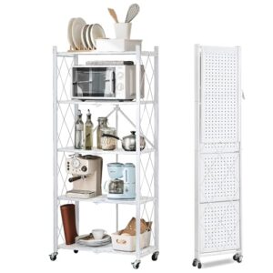 【Amazon.co.jp限定】QIUYMI 折り畳みラック 棚ラック 5段 幅71×奥行34×高さ155cm 折りたたみ スチールラック メタルラック 収納ラック オープンラック 折りたたみ式 360°キャスター付き 防サビ 高耐久 省スペース 組立簡単 移動便利 家庭用収納 キッチン 寝室 (ホワイト,5段)