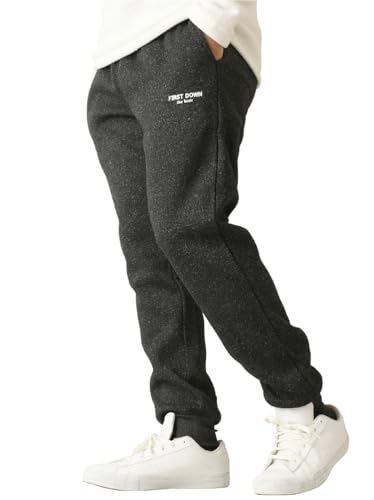 ファーストダウンの裏起毛ニットフリースジョガーパンツ。暖かさ抜群で、快適な着心地。メンズ向けのスウェットパンツ。サイズLL、カラーはD-杢ブラック。