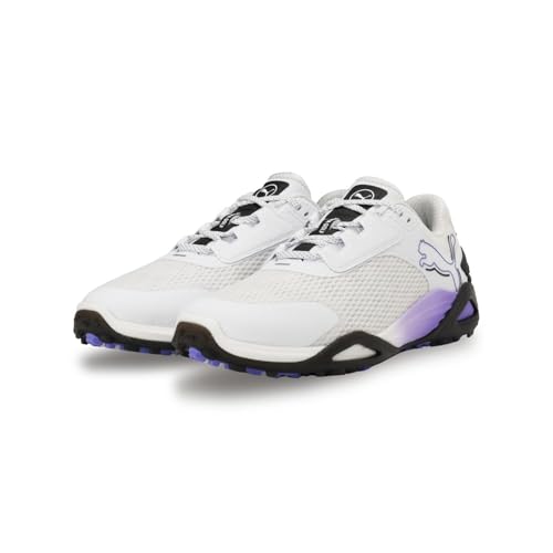 シャドウキャットニトロは、プーマホワイトとプーマブラック、ダークアメジストのカラーで展開されています。28.0cmサイズで、クッション性とスタイリッシュなデザインが特徴です。