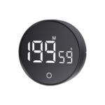 200分のキッチンタイマーはマグネット付きで、デジタル表示のダイヤル式。軽量でコンパクト、残り時間が見やすく、おしゃれなブラック。音量切替機能で子供や高齢者にも簡単に使用可能。