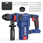 NANWEIの充電式ハンマードリルはコードレスで、ブラシレスモーターを搭載。SDSプラスに対応し、振動ドリルとハツリの2モードを切り替え可能。石材や壁への穴あけに最適で、マキタ18Vバッテリーに対応。バッテリーと充電器は別売り。