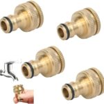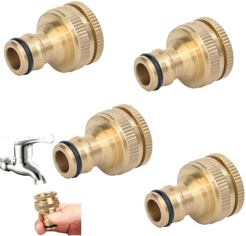 高耐久真鍮製の蛇口コネクター。1/2インチと3/4インチの水道ホースに対応。散水や洗車に最適で、簡単に接続可能。4個セットで農業や校庭にも便利です。