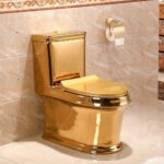 金色の浴室用トイレ、取り付け穴の間隔は300mmから400mm。便器タイプでE-穴の間隔が300mmの並行輸入品です。