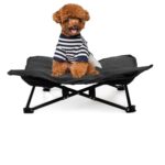 犬用コットキャンプベッド。折りたたみ式で、中型~大型犬に適用。地面から離れ、軽量で携帯便利。洗える通気性のあるデザイン。サイズM(90×90×30cm)で、アウトドアにも最適。