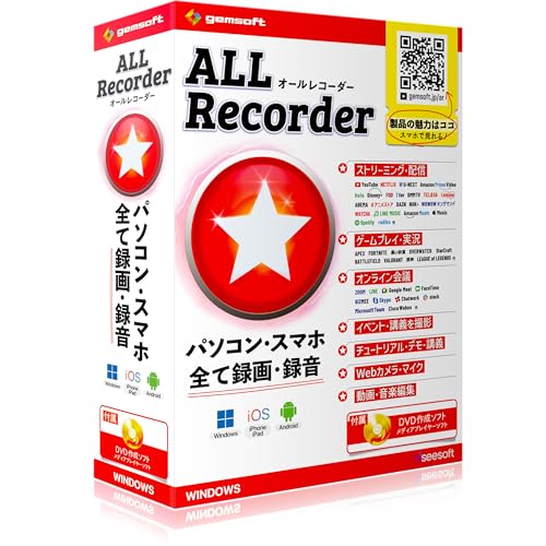 ALL★Recorderは、パソコンやスマホの画面・音声を簡単に録画・録音できるソフト。DVD作成ソフトが付属し、Amazon限定版として提供されます。ユーザーフレンドリーなインターフェースで、さまざまな用途に便利です。
