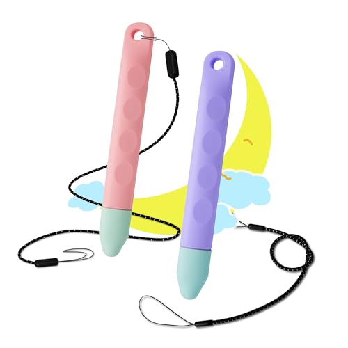 お子様に優しいタブレットスタイラス テザー付き ピンクとパープルのキッズスタイラスペン iPad Fireタブレット AMZ Fire Kids and Kids Pro、Suffaceタブレット、Samsungタブレットおよびすべてのタッチスクリーンデバイス用