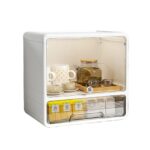 防塵・防湿の扉付き卓上食器棚。多機能の収納ボックスで、コップやお茶碗を整理整頓。2層タイプで大容量、簡単に使え、化粧品や小物も収納可能。コンパクトなプラスチック製。サイズは33X24X33CM。