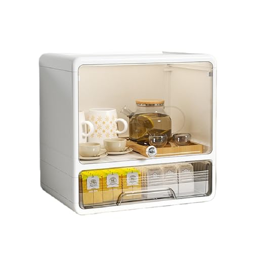 ミニカップボードカウンター上収納コップ お茶碗収納ボックス 収納棚防塵 防湿 扉付き卓上食器棚 収納ボックス 多機能 卓上収納ラック 卓上 デスク上置棚 収納棚テーブル 透明扉付き 一段二段三段 大容量 簡単 化粧品 小物 収納 白 コンパクト プラスチック 雑貨収納 仕切り 事務用品 化粧品 整理整頓 用品整頓 台所収納 家庭用 (2層33X24X33CM)の製品情報