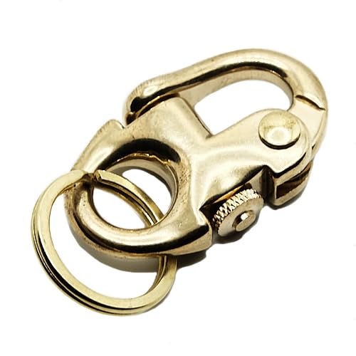 真鍮製のスナップシャックルキーホルダーです。ダブルリングとミリタリーカラビナが特徴で、ベルトループへの取り付けが可能。耐久性があり、工具としても活用できます。